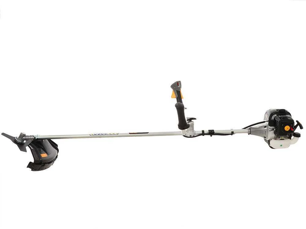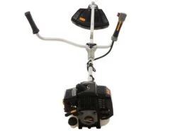 Il ha una doppia maniglia ergonomica che assicura il controllo del decespugliatore in ogni condizione. Questo prodotto è dotato anche di un cinghione di sostegno con riparo coscia, una testina tap&go con filo da 2,8 mm e disco a 3 denti.