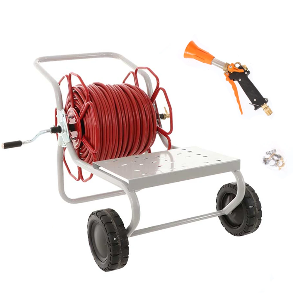 L è predisposto su un pratico carrello trasportabile con l’apposito manico. La pistola è di tipo professionale e il tubo da 100mt è ad alta pressione. Nel kit anche un raccordo in ottone per la lancia e 4 fascette.