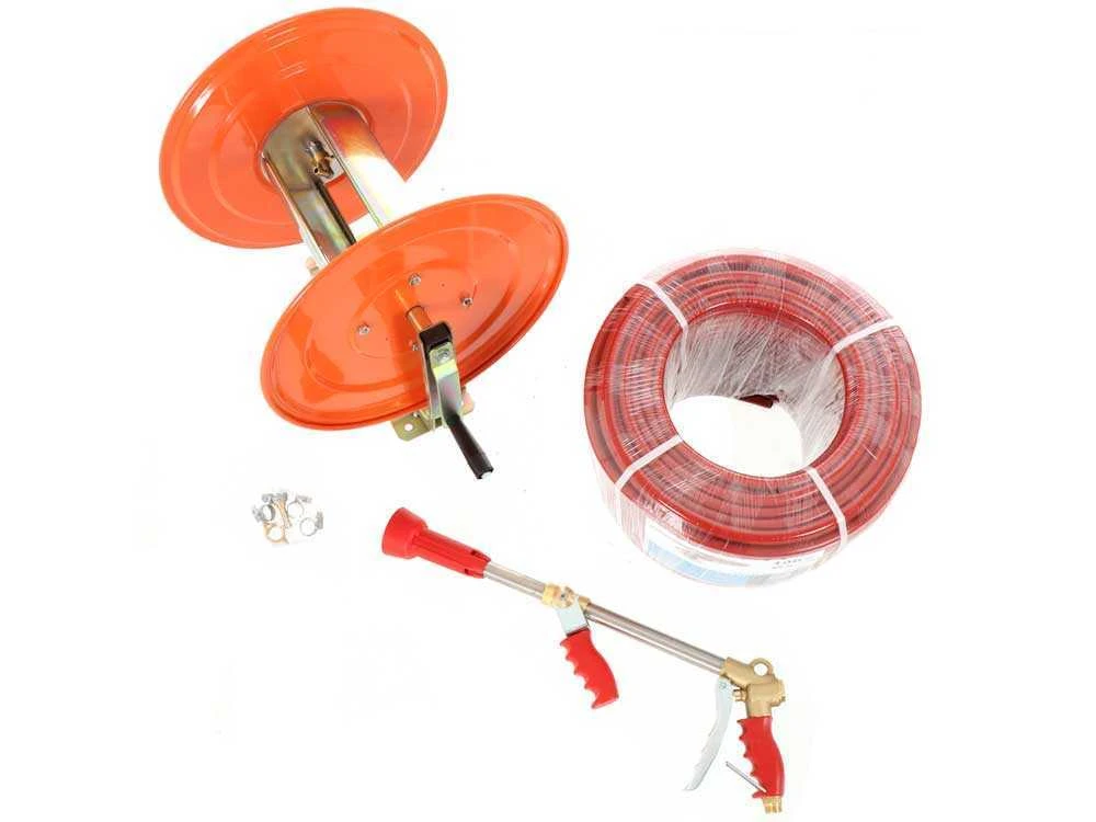 L è predisposto per essere montato su una botte o su altri macchinari. La pistola è di tipo professionale e il tubo da 100mt è ad alta pressione. Nel kit anche un raccordo in ottone per la lancia e 2 fascette.