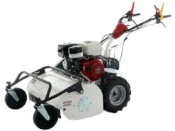 Dotata di due grosse ruote pivotanti anteriori, che le permettono di lavorare su qualsiasi terreno anche accidentato.