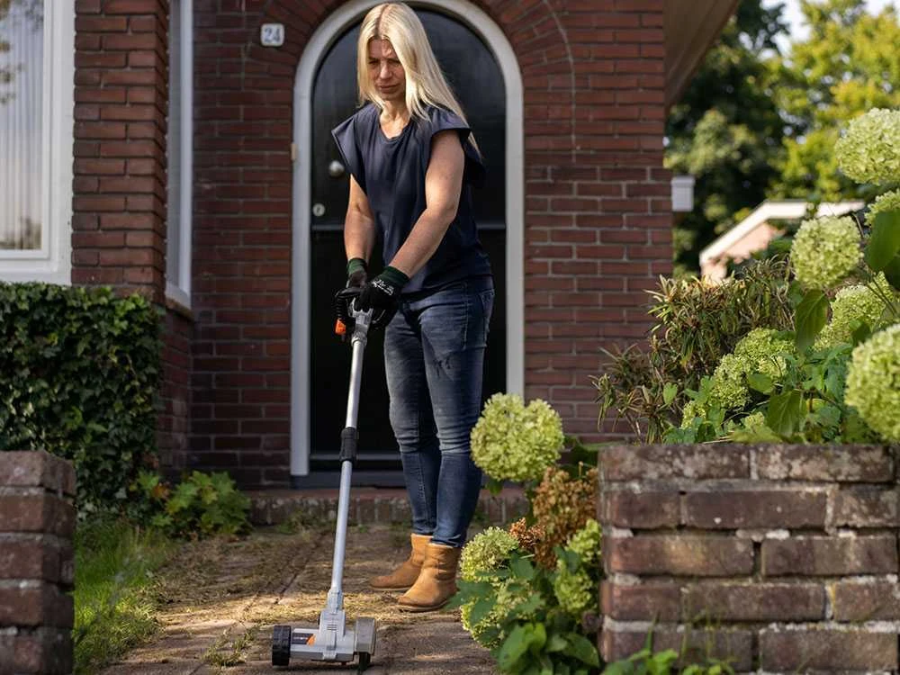 La testina rotante con le spazzole in acciaio rimuove efficacemente l’erba e il muschio anche in profondità.