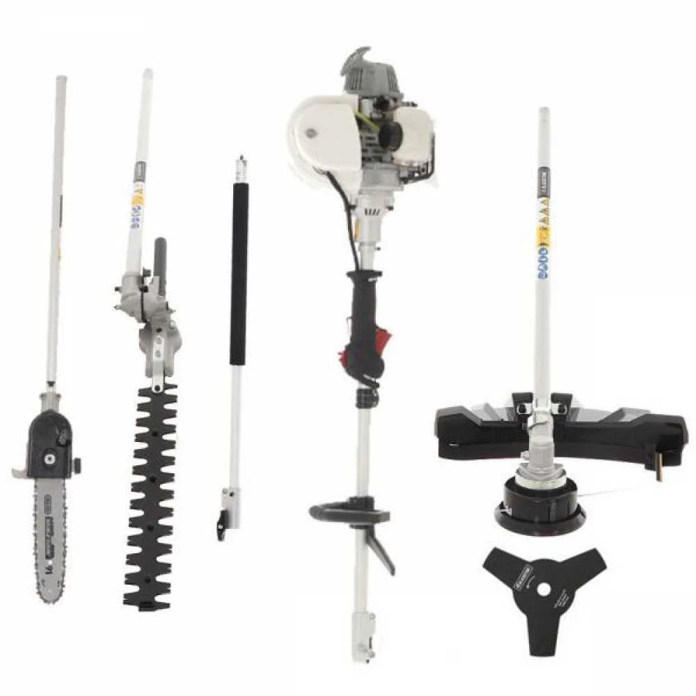 Potente ma economico, si può facilmente convertire in – Potatore – Tagliasiepi – Decespugliatore tramite un semplice sgancio rapido.