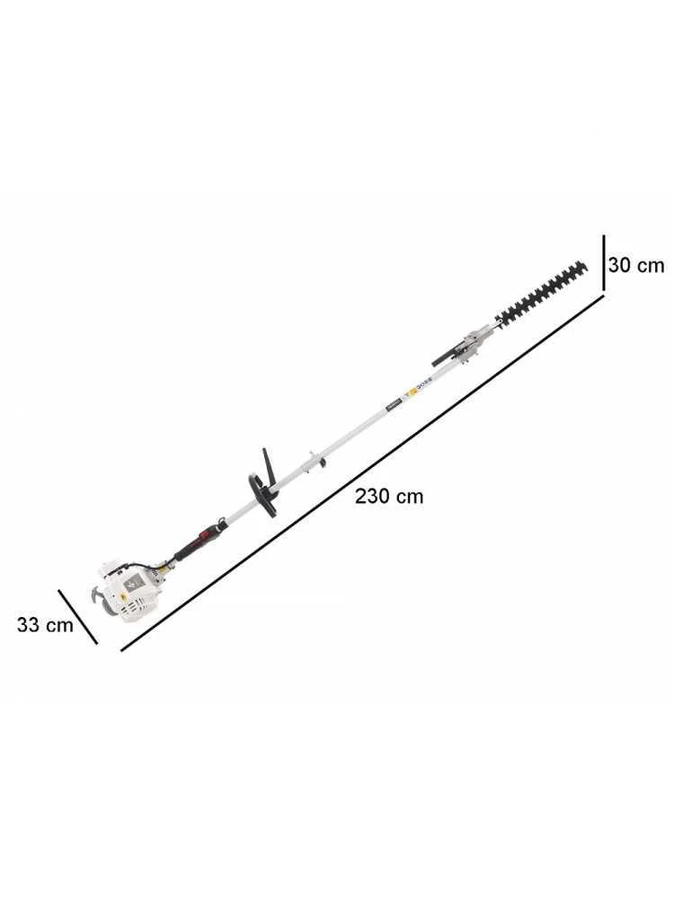 Il tagliasiepi con asta da 28 mm può raggiungere ben oltre i 3 mt di altezza utile di lavoro, grazie alla lunghezza totale di 230 cm