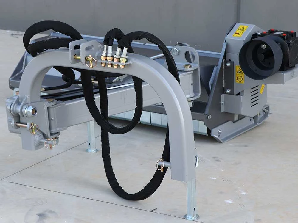 Lo spostamento laterale e verticale idraulico è comandato tramite 2 pistoni. Dotato di 4 tubi che vanno collegati agli attacchi idraulici presenti sul trattore.