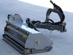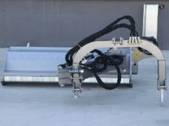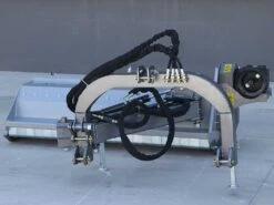 Lo spostamento verticale e laterale, di tipo idraulico, è affidato a due forti pistoni montati uno sul trincia e uno da montare sui due bracci collegati all’attacco a tre punti.