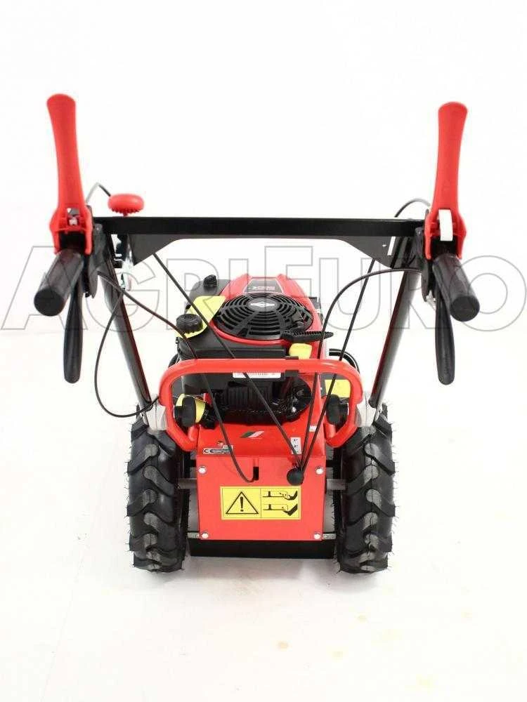 Altro grande vantaggio connesso alla presenza del rinvio con trasmissione a cinghia, è la leva innesto e disinnesto lama. Questa macchina innovativa consente di attivare la lama soltanto quando è necessario: questo permette di fare spostamenti sfruttando la trazione, con la lama ferma. Le ruote sono inoltre dotate di gruppo trazione ad ingranaggi ad ingranaggi a bagno d’olio capaci di sostenere qualsiasi intensità di sforzo.