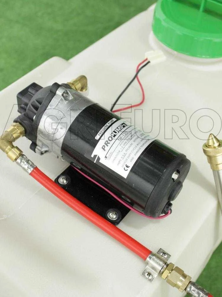 Quindi vi arriverà a domicilio già pronta per un uso immediato, senza dover approvvigionare altri particolari. Ricordiamo che prevede il collegamento alla batteria del mezzo con cui verrà portata e trainata, per esempio un trattorino rasaerba o un quad, collegandola semplicemente con il cavetto in dotazione alla batteria dello stesso. La lancia manuale in dotazione è dotata di robusta asta in acciaio inox e di ugello in ottone di tipo professionale.