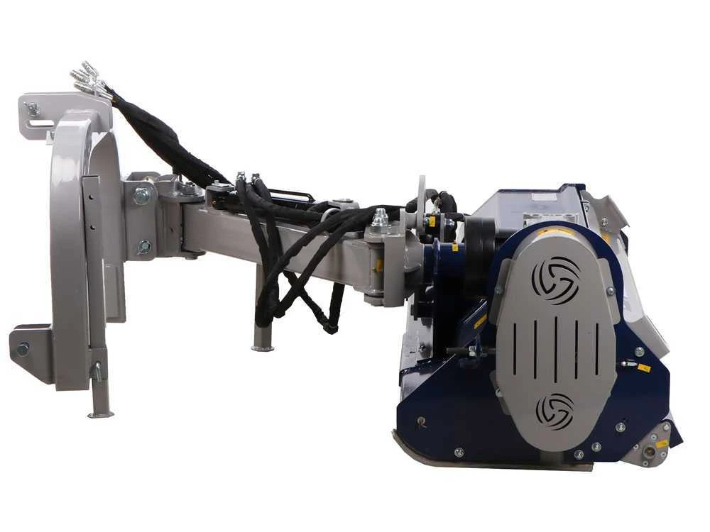 La robustezza del sistema di spostamento è garantita dalla sua struttura, composta da due bracci snodati. Questi bracci sono progettati per gestire carichi pesanti e resistere alle sollecitazioni durante l’utilizzo del trinciatore. Inoltre, sono dotati di ingrassatori che permettono una corretta lubrificazione, assicurando una maggiore durata e affidabilità del sistema nel tempo.