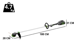 Si tratta di un decespugliatore a batteria silenzioso, leggero e facile da utilizzare, il prodotto senza batteria pesa solamente 3.5kg