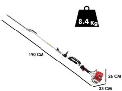 Dotato di doppia lama da con meccanismo di rotazione regolabile in per poter agevolare tutti i tipi di taglio della siepe nella posizione più adeguata. Il tagliasiepi da può raggiungere i di altezza utile di lavoro.