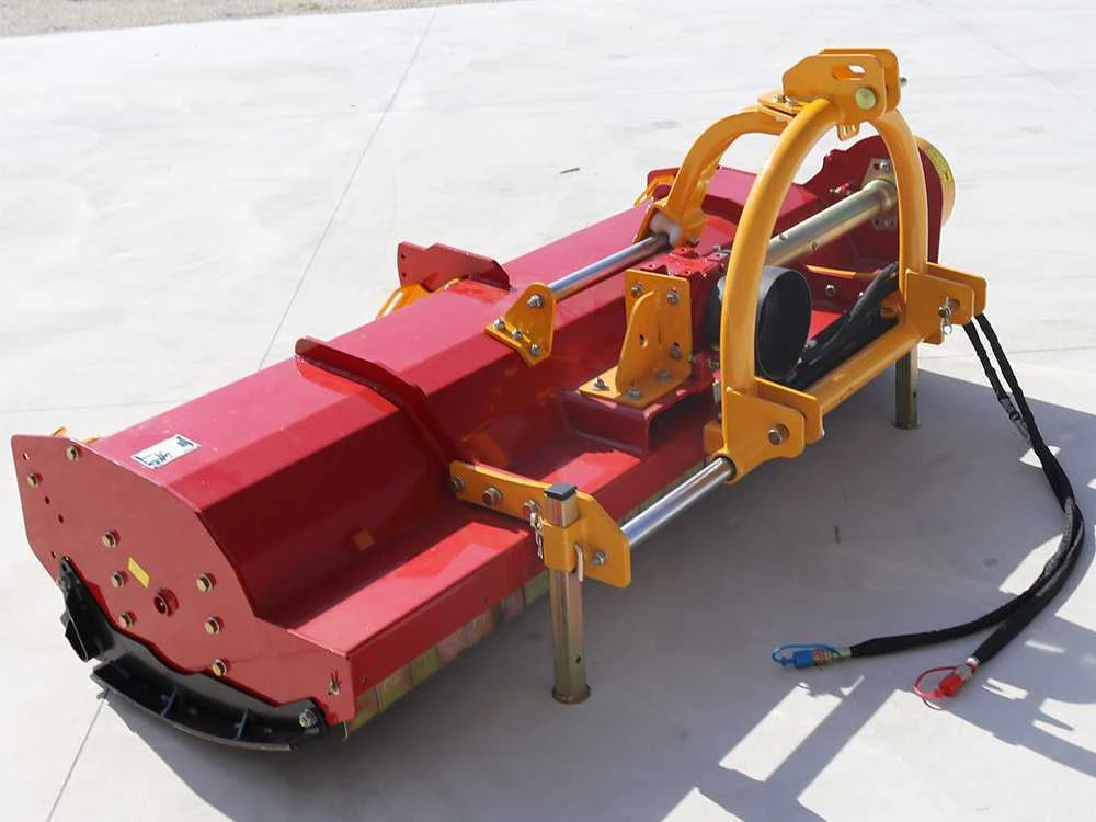 L’attacco a tre punti scorre su un robusto tubolare che percorre tutta la larghezza di questa trinciaerba.