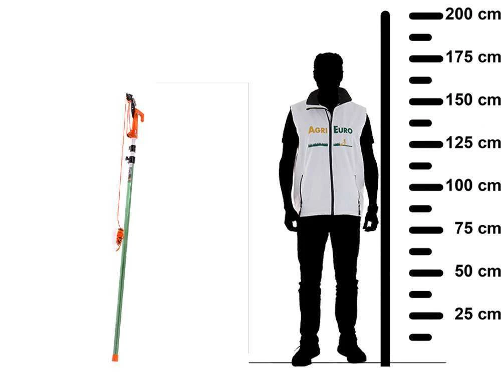 La è una forbice su asta telescopica con azionamento a corda su carrucole.