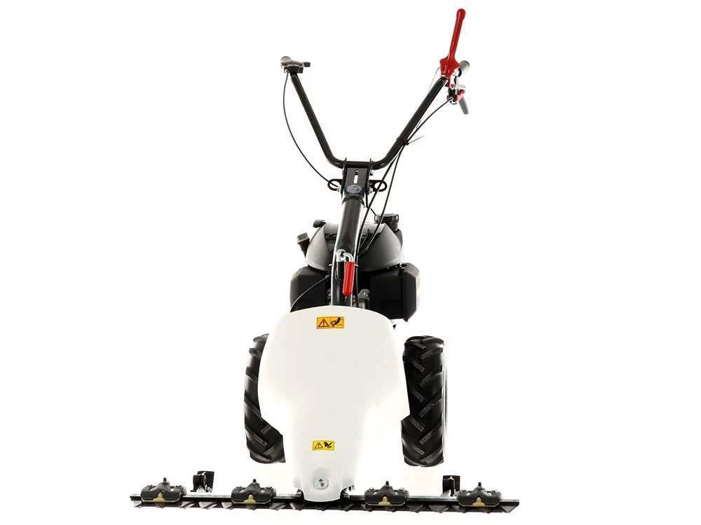 L’accessorio barra falciante con lunghezza di , fornita di serie, è del tipo con , cioè il movimento di taglio viene effettuato sia dalla fila di lame superiore sia da quella inferiore.
