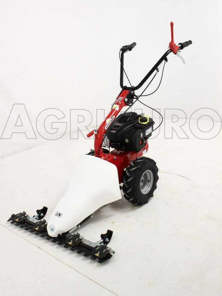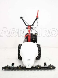 Questo la differenzia da tutte le motofalciatrici semoventi con motore a scoppio classiche sul mercato, proposte da tutti i vari produttori, che sono ancora dotate tutte di barra falciante movimento monolama (si muove solo la lama superiore, mentre la lama inferiore è fissa).