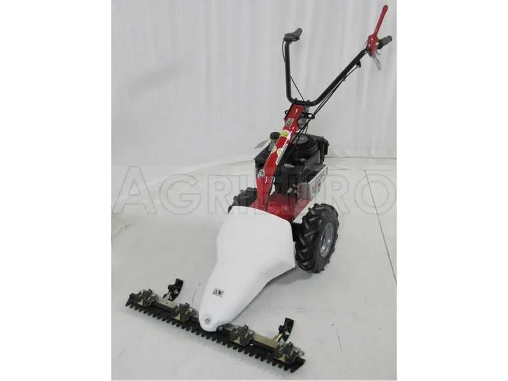 Proponiamo questa motofalciatrice a scoppio semovente, con ruote pneumatiche scolpite trazionate, collegate ad una trasmissione a vite senza fine in bagno, dotata di unica marcia avanti. L’accessorio (fornita di serie nel prezzo d’inserzione) è del tipo (sia la lama inferiore che quella superiore di cui è composta la barra si muovono ed in moto contrapposto). Questo la differenzia da tutte le motofalciatrici con motore a scoppio classiche sul mercato, proposte da tutti i vari produttori, che sono ancora con movimento monolama (si muove solo la lama superiore, mentre la lama inferiore è fissa