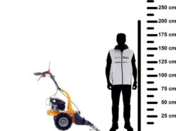 La Stiga è una motofalce a scoppio semovente dotata di ruote pneumatiche scolpite di grandi dimensioni, comandate da una trasmissione a vite senza fine in bagno d’olio ed è monomarcia.