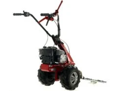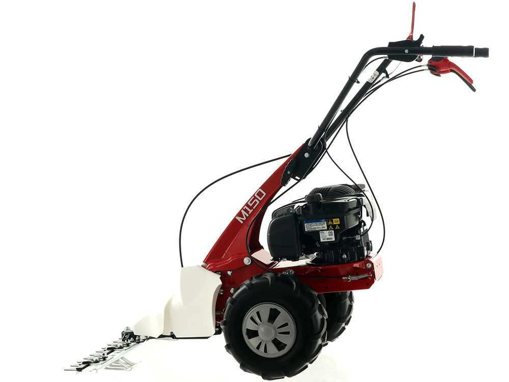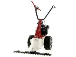 E’ una motofalce a scoppio semovente dotata di ruote pneumatiche scolpite di grandi dimensioni, comandate da una trasmissione a vite senza fine in bagno d’olio e .