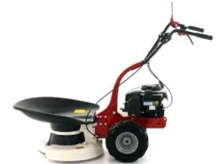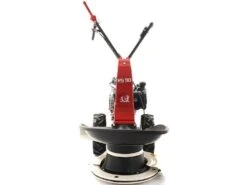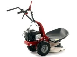 La è una falciatrice rotativa con motore a scoppio a benzina trazionata dotata di ruote pneumatiche scolpite comandate da una trasmissione a vite senza fine in bagno d’olio. La sua (compresa nel prezzo d’inserzione) è composta da un disco rotante dotato di ben 4 lame rotanti sul loro asse a scomparsa (le lame rientrano all’interno della scocca) in caso di urto.