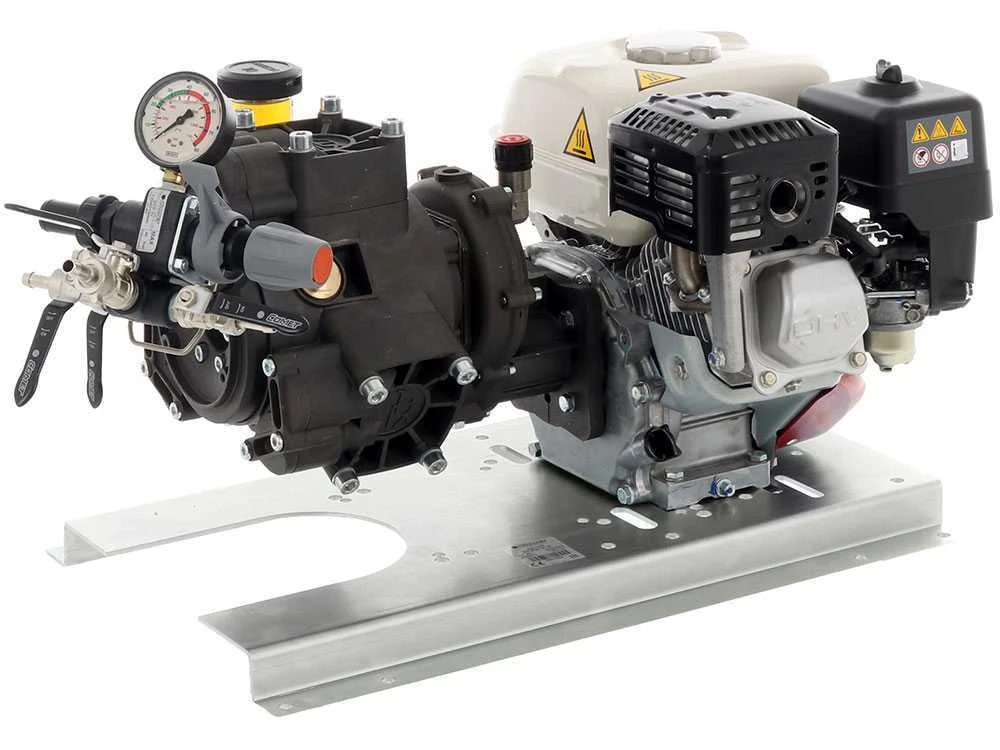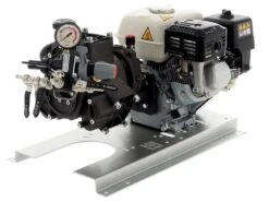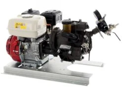 , con riduttore di giri e gruppo di comando. Può essere applicata a carrelli, carriole o polverizzatori portatili o carrellati.
