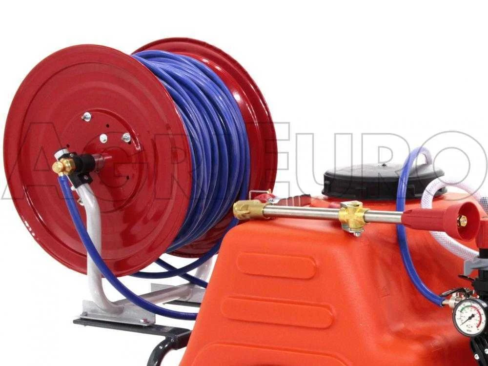 Lavvolgitubo è predisposto per essere montato su una botte o su altri macchinari. La lancia mitra è di tipo professionale e il tubo da 100mt è ad alta pressione. Nel kit anche un raccordo in ottone per la lancia e 2 fascette.