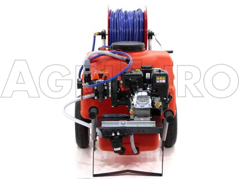 - Baricentro molto basso che garantisce eccezionale stabilità in ogni condizione (con avvolgitubo, con diversi tipi di motopompe, su terreno accidentato, ecc…)