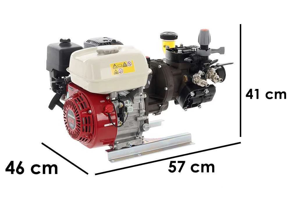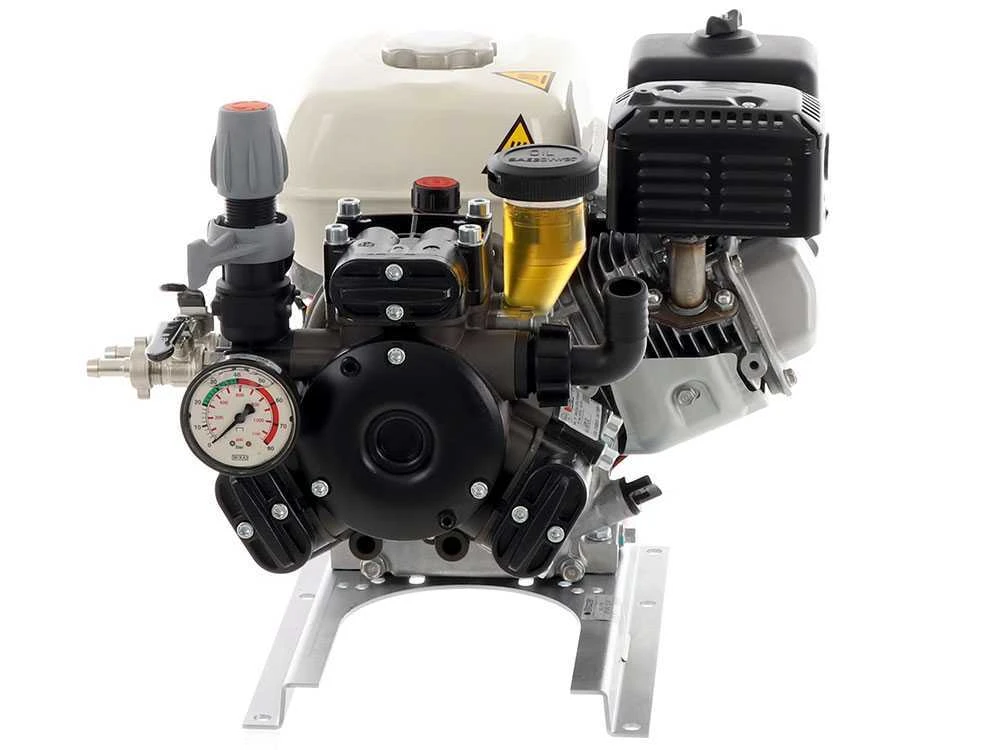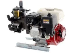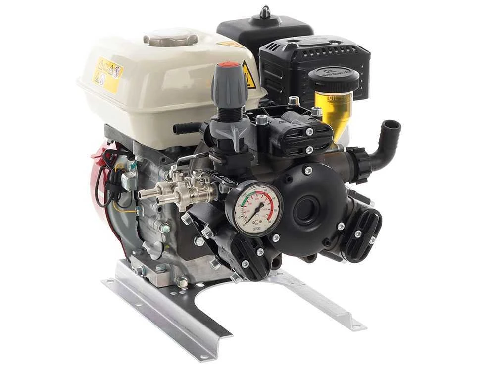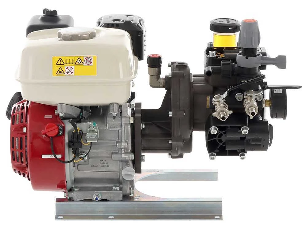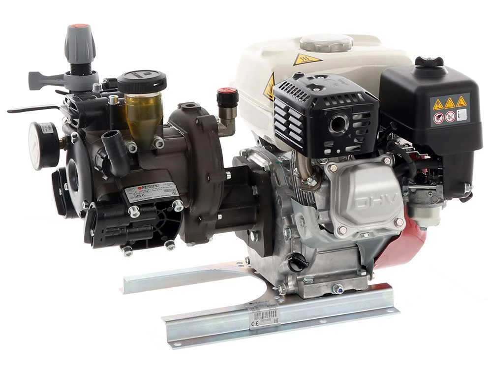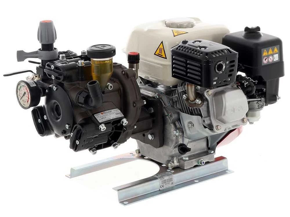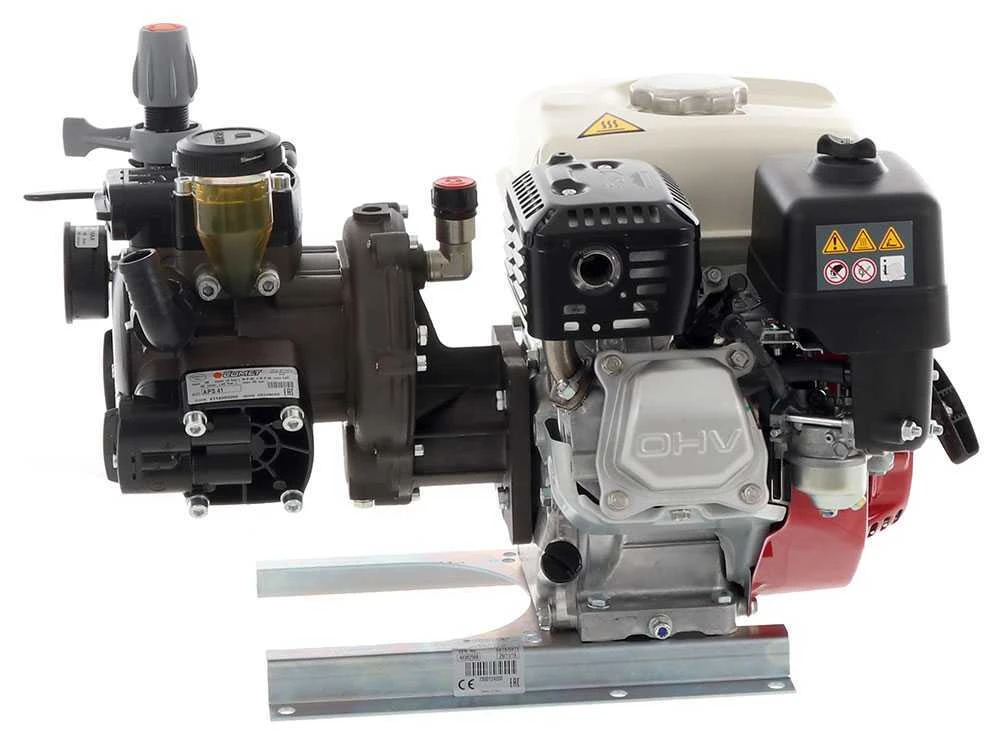 , con riduttore di giri e gruppo di comando. Può essere applicata a carrelli, carriole o polverizzatori portatili o carrellati.