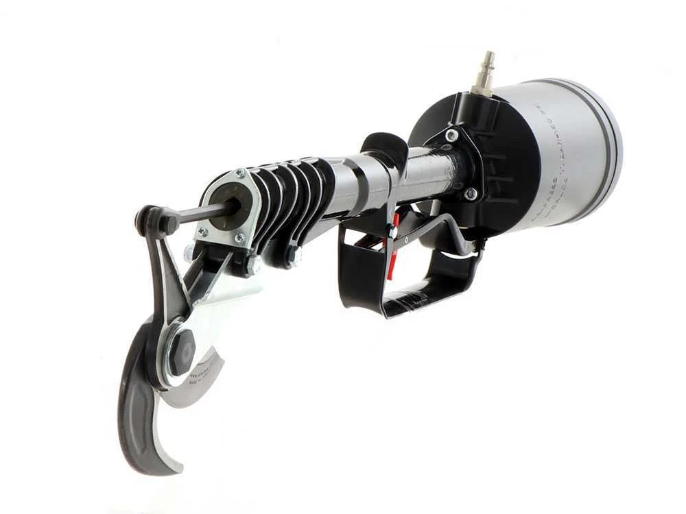 L’azionamento del forbicione avviene tramite la pressione sulla leva, previo sblocco della sicurezza palmare. L’energia di azionamento è fornita dall’aria compressa e inviata tramite tubazione all’ingresso aria.