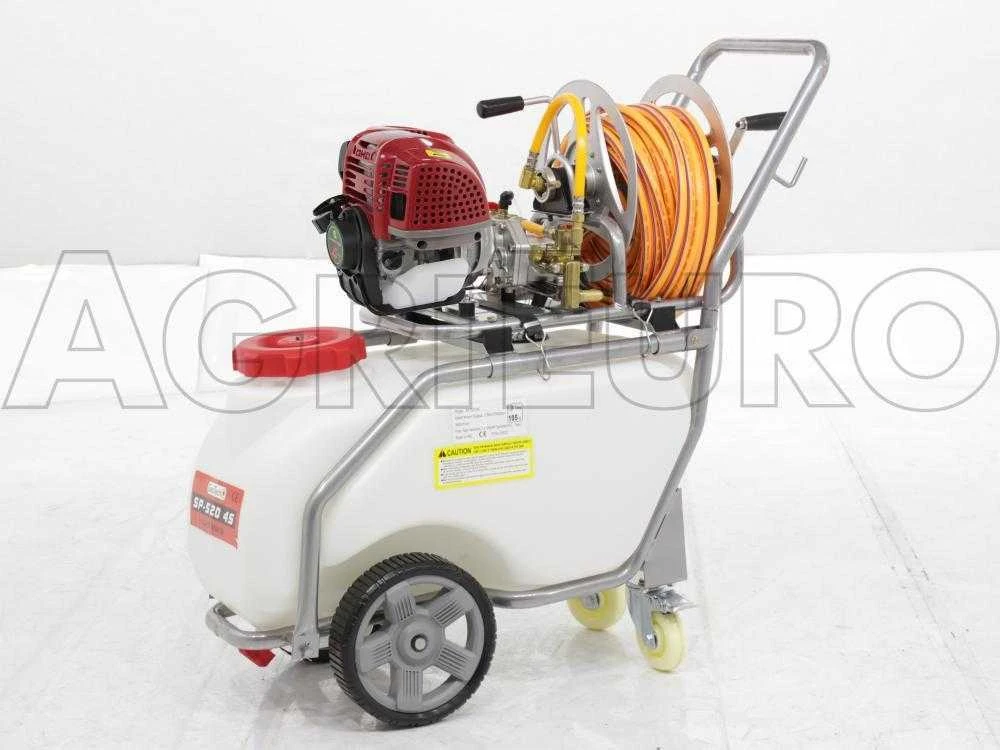 l’intero telaio e l’avvolgitubo sono realizzati in acciaio.La motopompa da irrorazione viene spedita completa di e di numerosi altri accessori.
