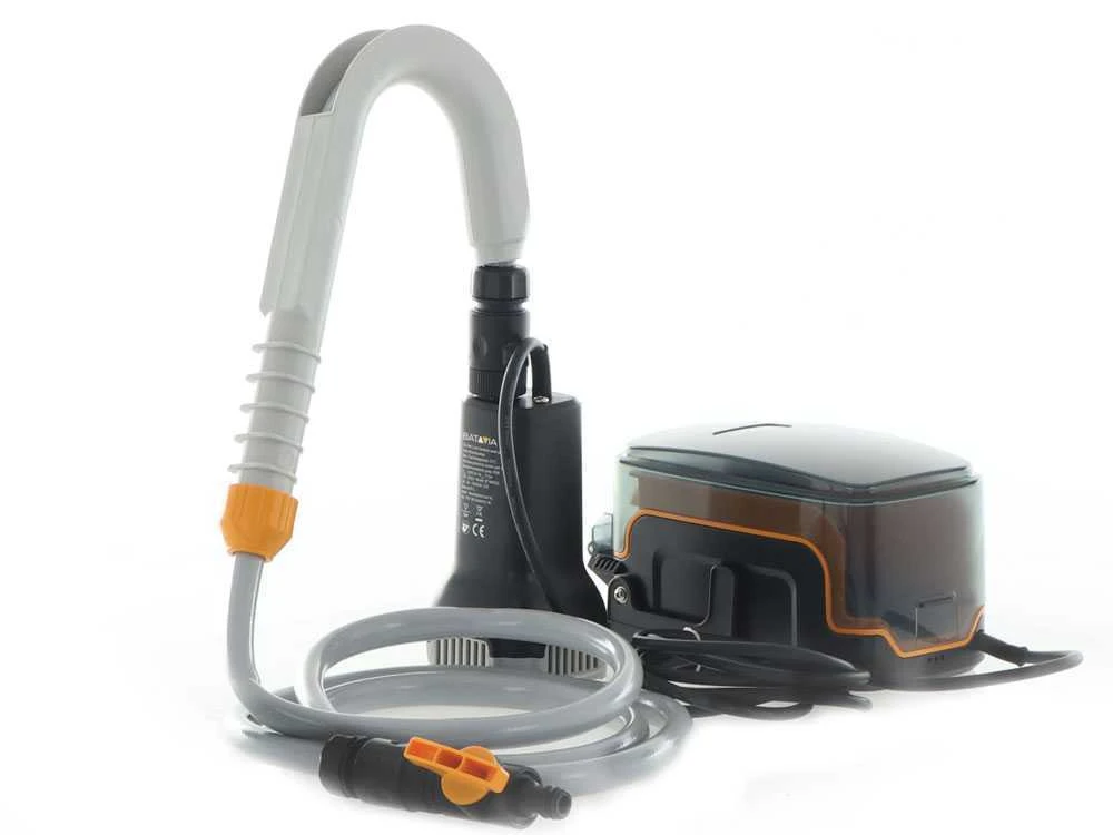 Il lungo collegamento del cavo alla scatola della batteria consente una maggiore profondità di immersione: per pompare e rimpinguare l’acqua indipendentemente dalla rete elettrica, con flessibilità d’uso e un potente funzionamento.