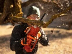 Monta una catena da con copertura protettiva e barra da e un’impugnatura ergonomica che grazie alla protezione per la mano conferisce maggiore sicurezza.