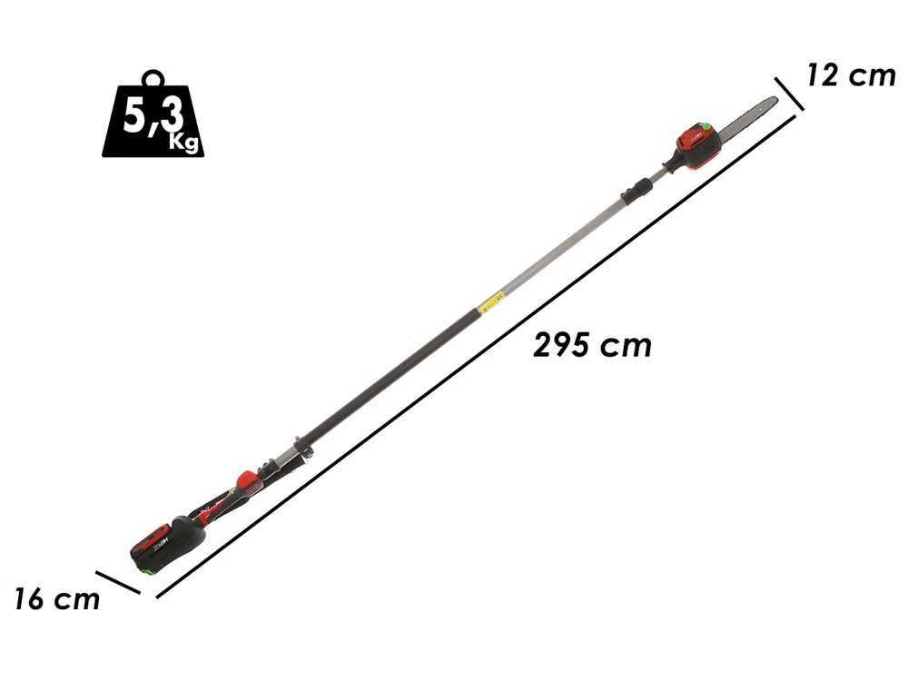 L’asta può essere allungata fino a raggiungere i 390cm totali, per consentire il lavoro in più altezze senza impalcature di vario genere.