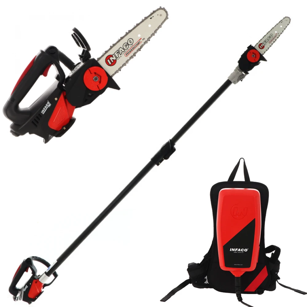 Il potatore a batteria Infaco è dotato di una . Questa caratteristica di alberi e piante. Vengono così tagliate in totale sicurezza senza doversi affidare a scale appoggiate su terreni accidentati, in pendenza o sconnessi.