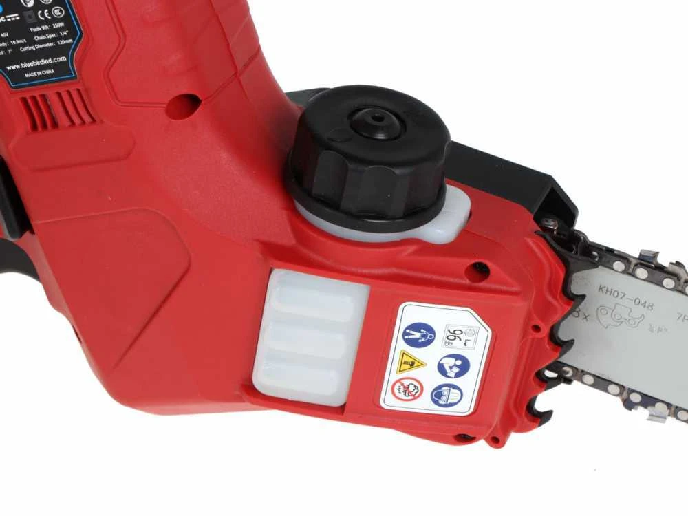 La barra da 7” con catena da 1/4” è dotata di un freno catena elettronico che permette all’operatore di avere pieno controllo sullo strumento. Per quanto riguarda la regolazione della catena, in questo modello viene in modo automatico.