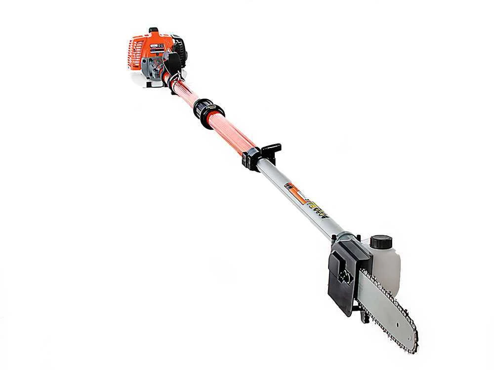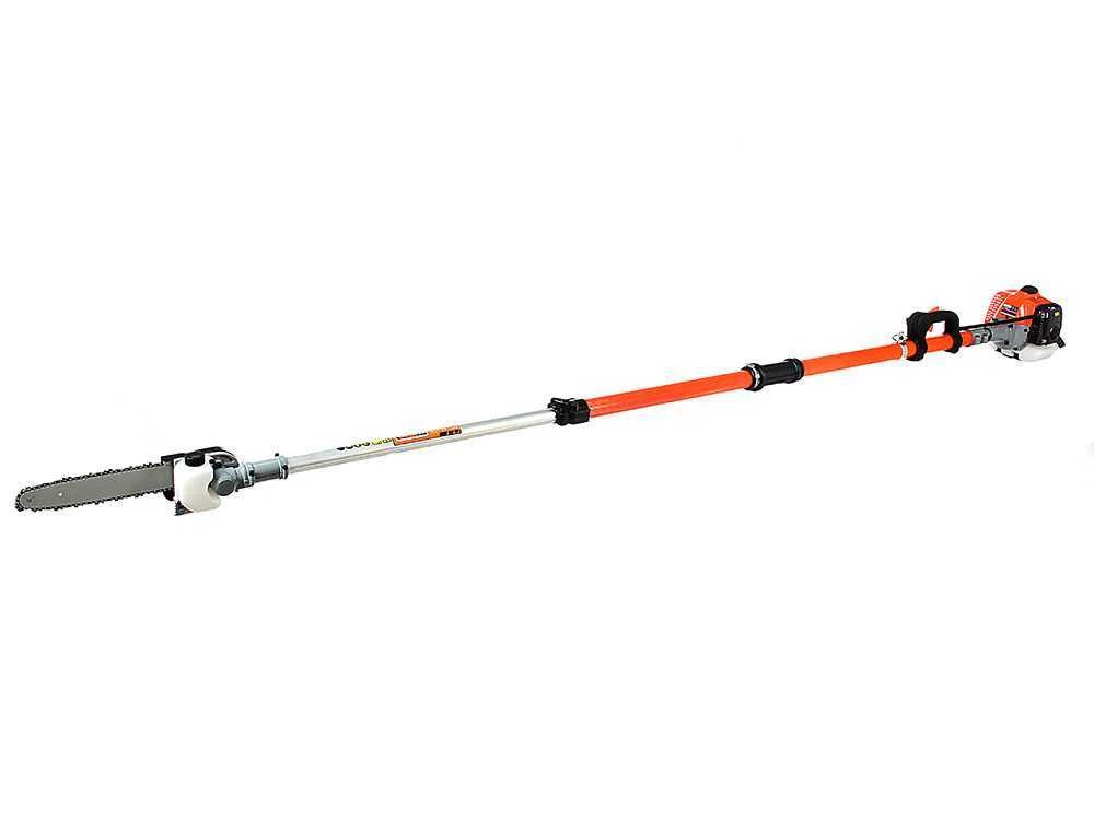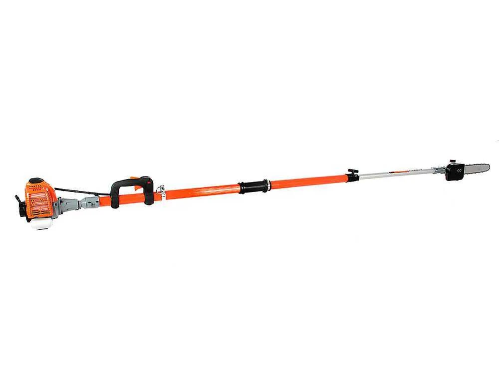 Il potatore telescopico è un potatore con motore a scoppio da 26 cc che sviluppa circa 1 Hp di potenza ed è dotato di una barra di taglio a catena della lunghezza di con serbatoio olio integrato.