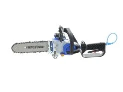 L’impugnatura ergonomica è studiata appositamente per essere simile a quella di una vera motosega.