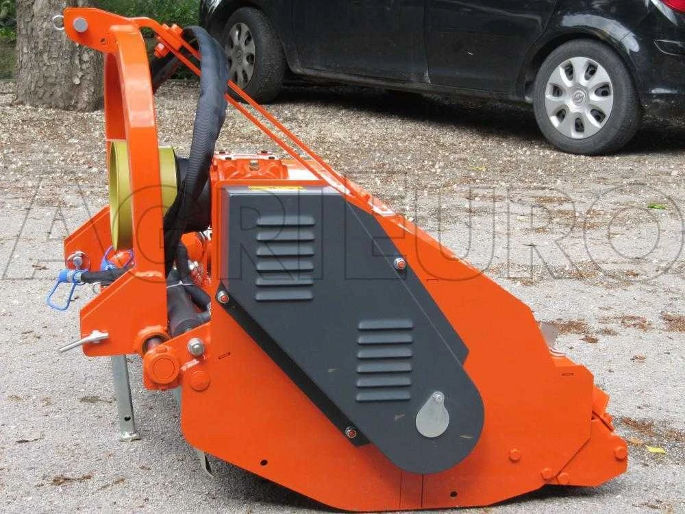 Trinciasarmenti tipo medio idoneo per tipologie differenti di lavorazione (erba, potature, paglia, etc…). È provvisto di spostamento laterale idraulico su guida cromata in C45, coperchio posteriore apribile per ispezione, 3 cinghie di trasmissione, cuscinetti a rulli a botte orientabili con doppi anelli di tenuta a doppio labbro, rullo posteriore, e scatola ingranaggi Comer con prolunga lubrificata.