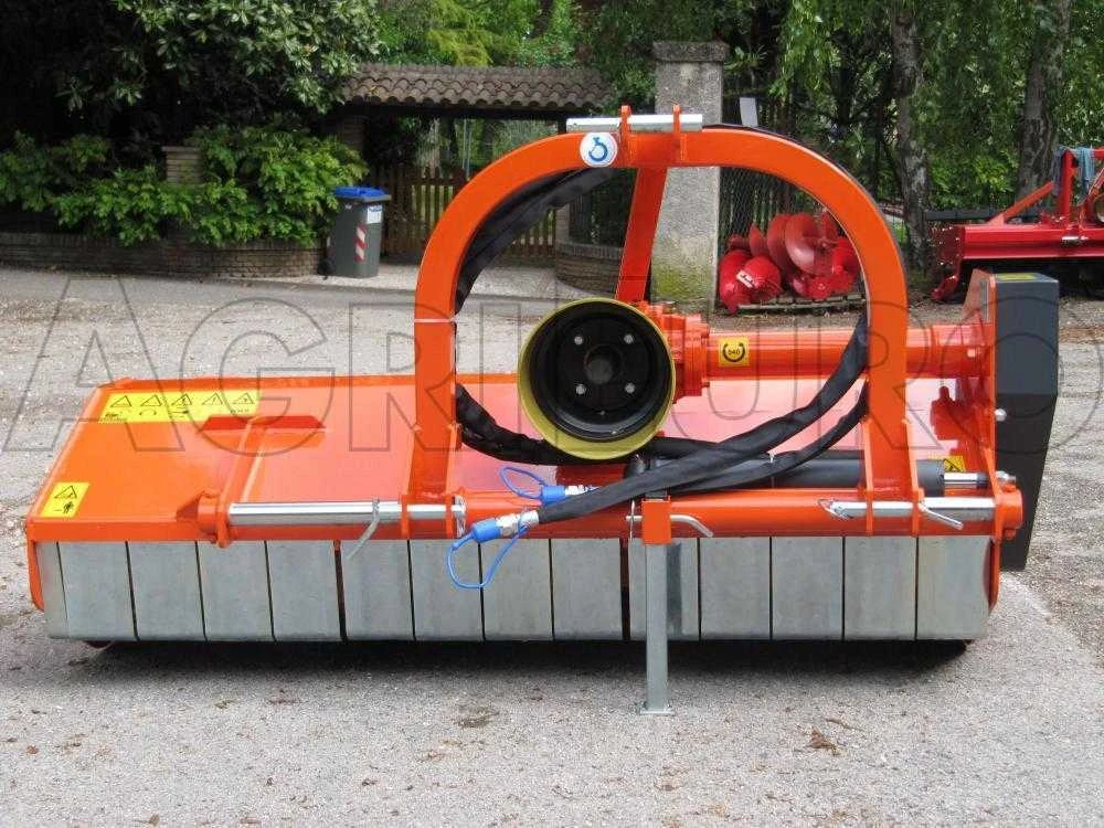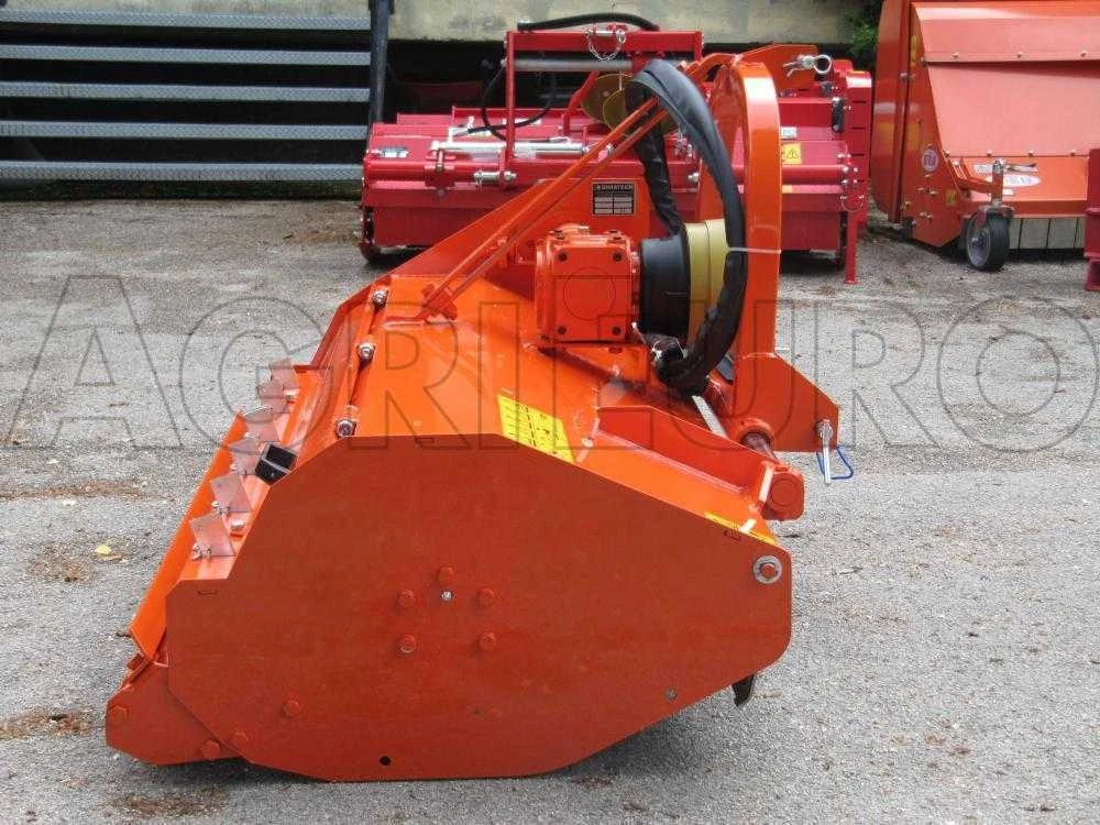 Trinciasarmenti tipo medio idoneo per tipologie differenti di lavorazione (erba, potature, paglia, etc…). È provvisto di spostamento laterale idraulico su guida cromata in C45, coperchio posteriore apribile per ispezione, 3 cinghie di trasmissione, cuscinetti a rulli a botte orientabili con doppi anelli di tenuta a doppio labbro, rullo posteriore, e scatola ingranaggi Comer con prolunga lubrificata.