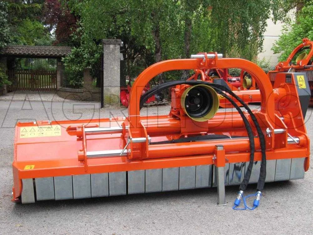 Trincisarmenti tipo pesante idoneo per tipologie differenti di lavorazione (erba, potature, paglia, sottobosco, etc…). È provvisto di spostamento laterale idraulico su doppia guida cromata in C45, doppio telaio scatolato con coperchio posteriore apribile per ispezione, 4 cinghie di trasmissione, cuscinetti a rulli a botte orientabili con doppi anelli di tenuta a doppo labbro, slitte laterali regolabili e scatola ingranaggi Comer con prolunga lubrificata.