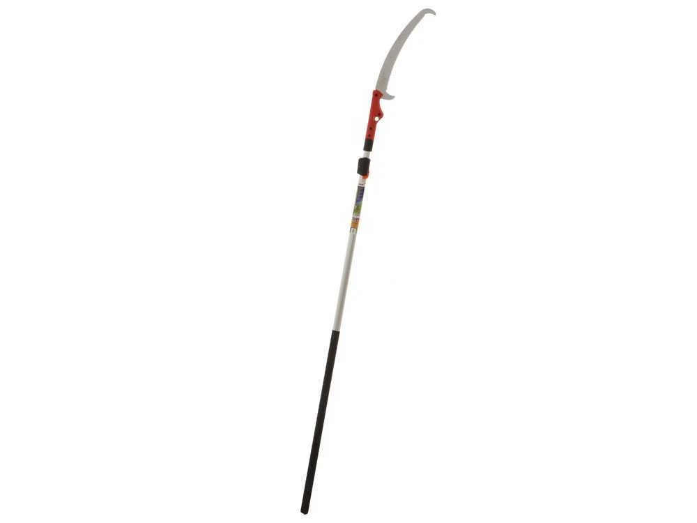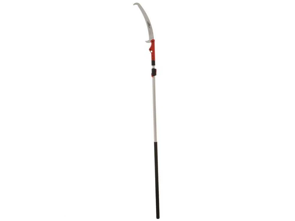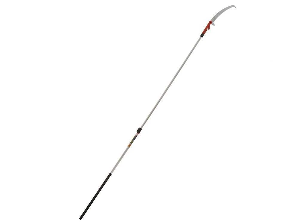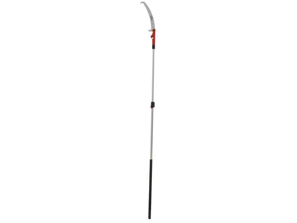 L’asta telescopica è regolabile e va da un minimo (segaccio compreso) di 270 cm ad un massimo di 460 cm. Sull’ asta sono presenti fori per poter bloccare il pulsante caricato a molla fino a 6 diverse lunghezze.