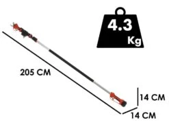 La peculiarità di questa forbice è senza dubbio l’asta di prolunga che permette di arrivare molto in alto con il minimo sforzo. La lunghezza massima è di